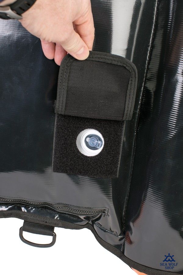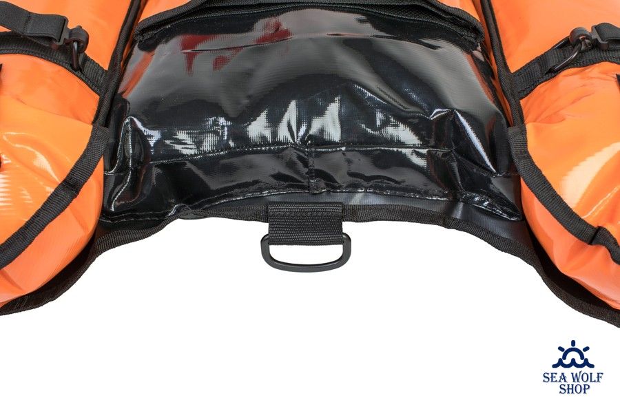 Плотик оснащён сетчатым карманом увеличенного объёма с двумя оппозитно расположенными карманами на застёжке-«липучке». В этот карман укладывают то, что не боится забрызгивания водой и должно быть на виду или под рукой подводного охотника на акватории (например – телефон или рация, карта или GPS-навигатор).