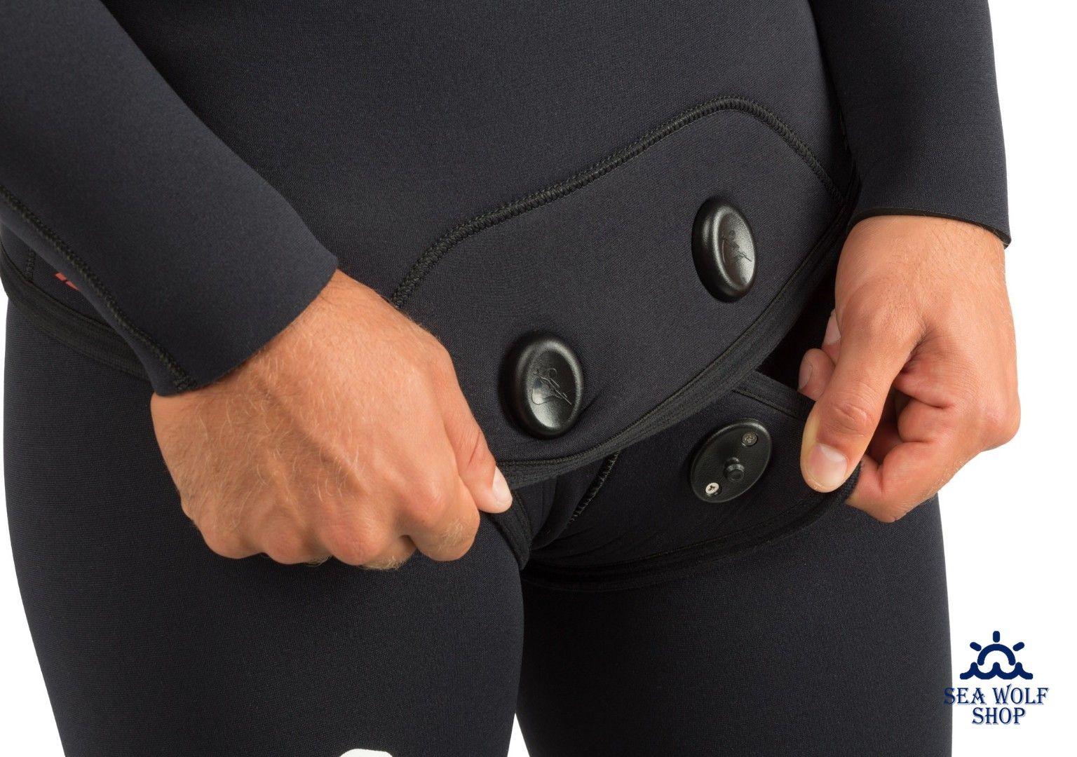 - Тип гидрокостюма — мокрый, двухсоставной (куртка со шлемом и штаны без лямок).