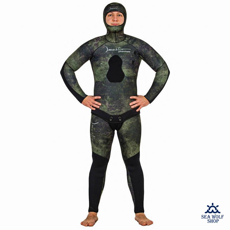 Материал duratex (дюратекс) защищает колени и локти костюма от преждевременного истирания.В гидрокостюме Marlin Phantom есть крепление для ножа (расположено на груди, слева).