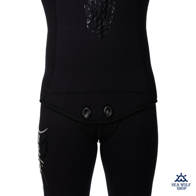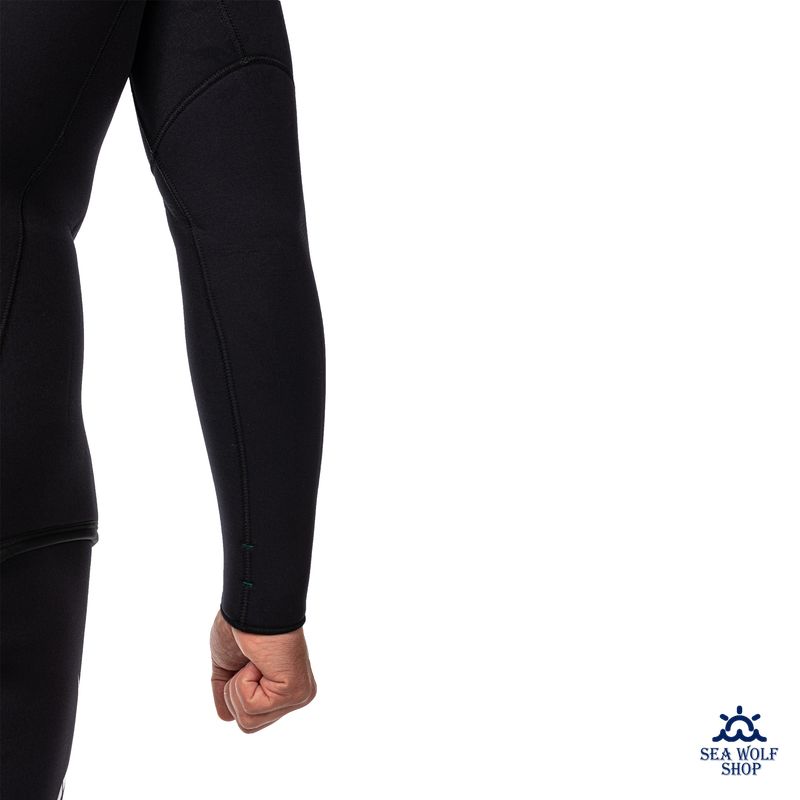 Куртка имеет крой типа реглан, который увеличивает комфорт и обеспечивает максимальное прилегание. Полиуретановый нагрудник защитит ткань гидрокостюма в процессе заряжания ружья, а его продуманный дизайн не помешает дышать полной грудью.