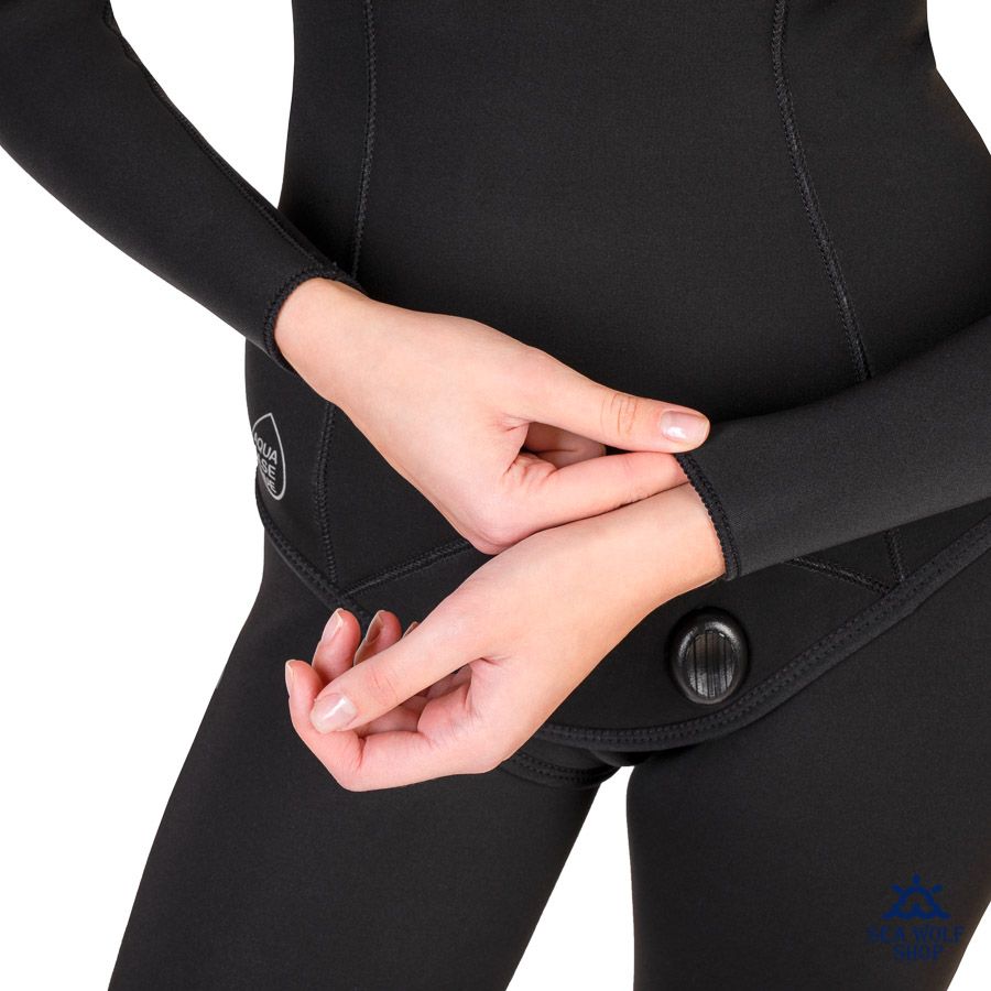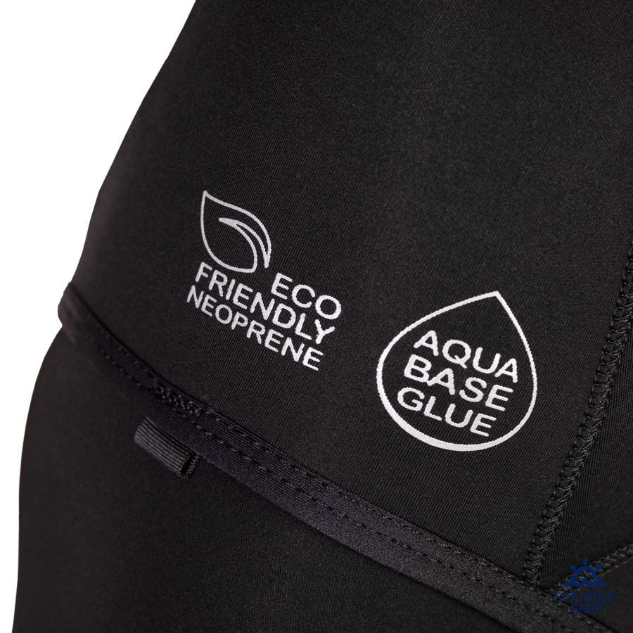 Широкая лицевая манжета и манжеты на лодыжках изготовлены из более тонкого неопрена и имеют покрытие glideskin, облегчающее надевание. Широкий пояс на штанах также выполнен из более тонкого эластичного неопрена и сужается кверху, что улучшает посадку и гарантированно предотвращает проникновение воды внутрь. Сзади пояс существенно выше, что обеспечивает дополнительную теплозащиту. Для удобства просушки штаны оснащены петличками по бокам. Нижний брасовый ремень куртки усилен с обеих сторон тканью.