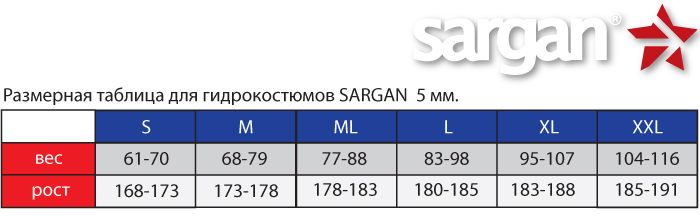 Гидрокостюм неопрен 9мм Sargan "КАЛАН 3.0" р.M-48