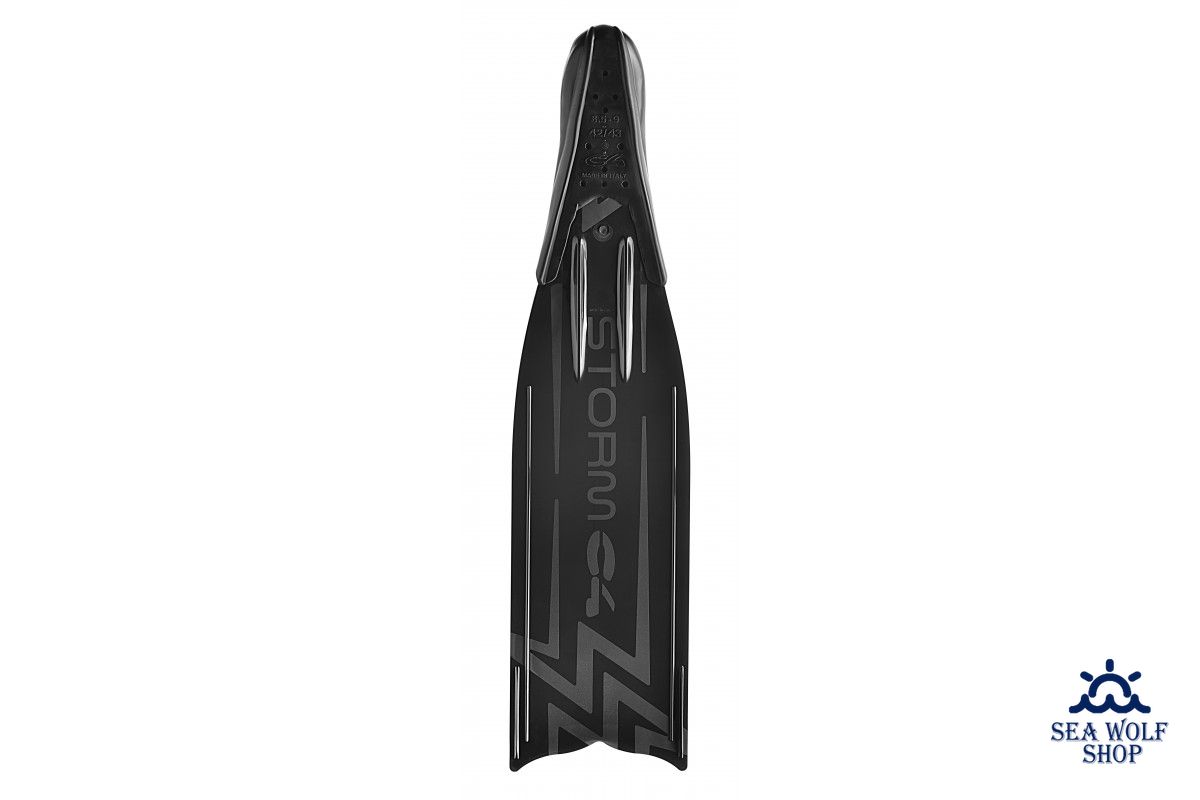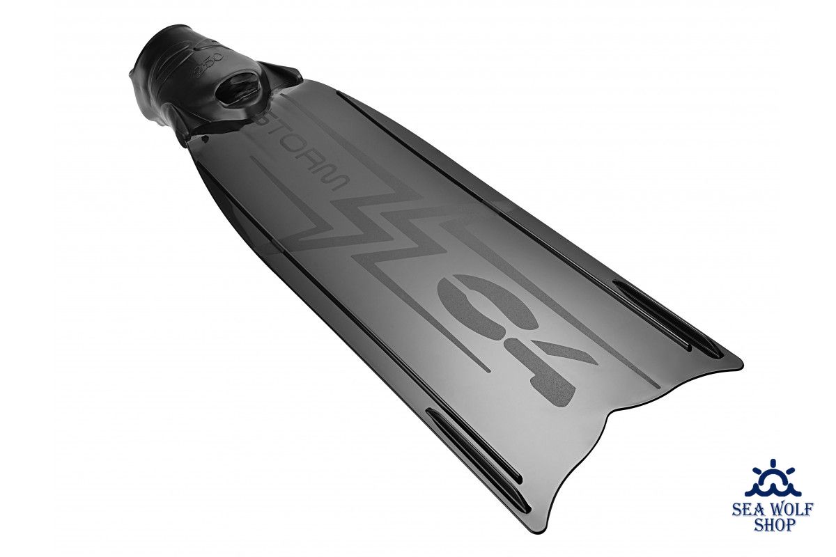 Ласты C4 STORM, это инновационные монолитные ласты, комбинация калош C4 250 серии и укороченных лопастей из гибкого и прочного технополимера ТРЕ, они короче на 10 см, чем стандартные длинные лопасти для подводной охоты. На данный момент это одни из самых легких и комфортных ласт в мире, вес одной пары ласт в размере 42-43 составляет всего лишь 590 грамм. Ласты C4 STORM производятся в Италии, методом литья под давлением. Строгая проверка качества происходит на всех этапах производства.