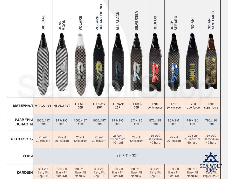 На сегодняшний день самые легкие и универсальные лопасти, подходят для самых требовательных фридайверов и подводных охотников.