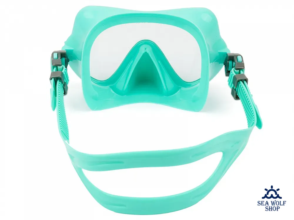 Одна большая фигурная линза из ЗАКАЛЕННОГО СТЕКЛА обеспечивает достаточный обзор из статичного положения, не вынуждая крутить под водой головой во все стороны, чтобы что-то увидеть.