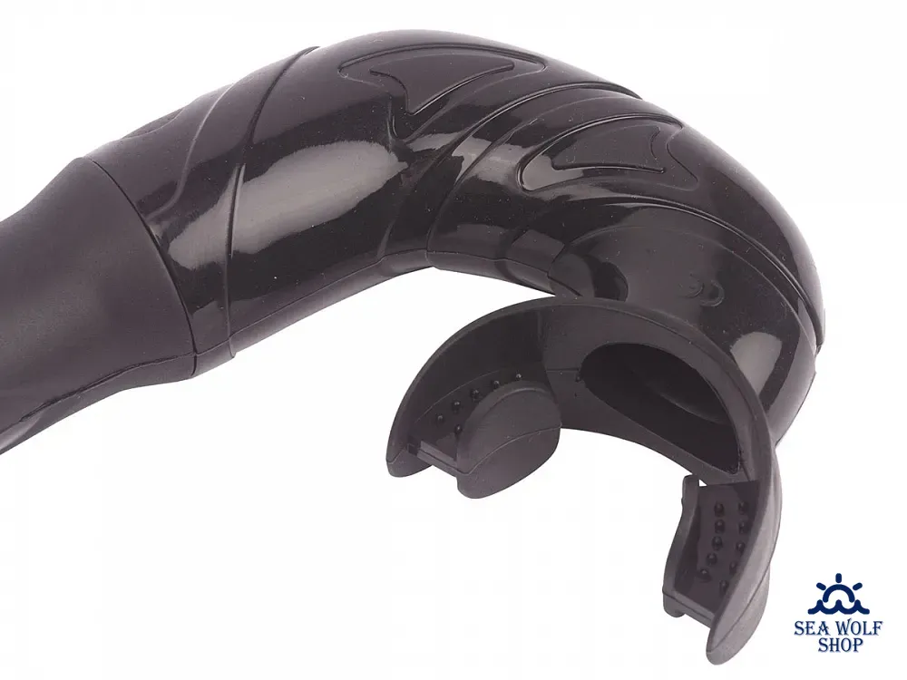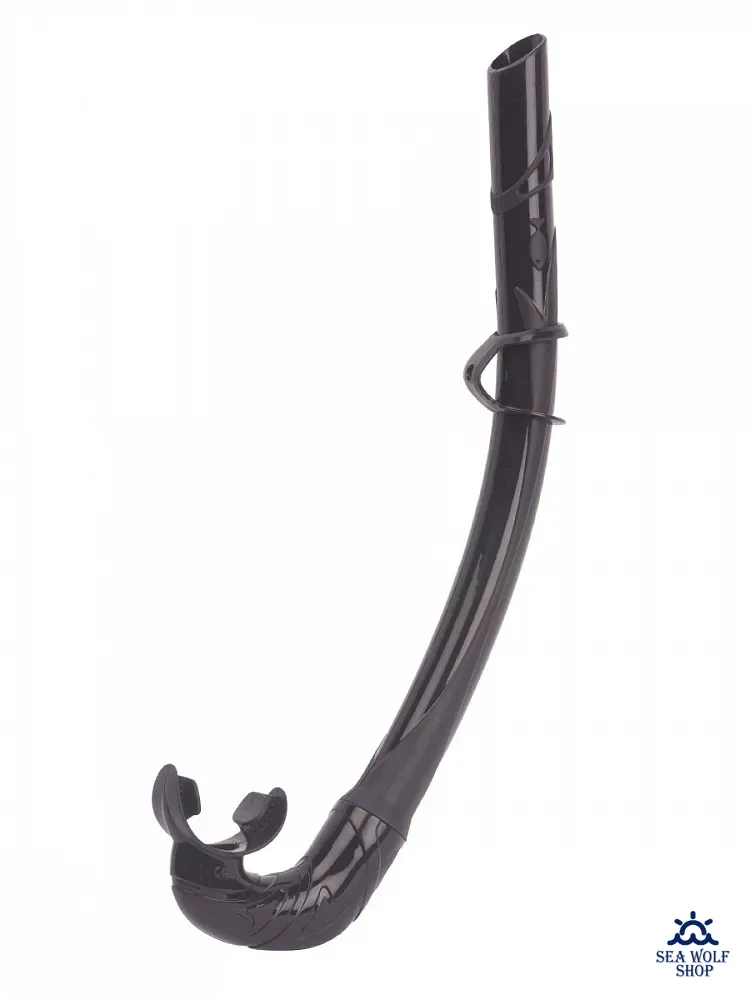 Трубка создана специально для снорклинга и подводной охоты. Специальная изогнутая форма трубки обеспечивает прилегание к лицу, значительно снижая сопротивление при плавании и погружении. Загубник выполнен из гипоаллергенного силикона, а его особая конструкция и гибкая соединительная вставка с тремя изгибами обеспечивают удобное расположение загубника при любой форме лица. Крепление для ремешка маски классическое.
