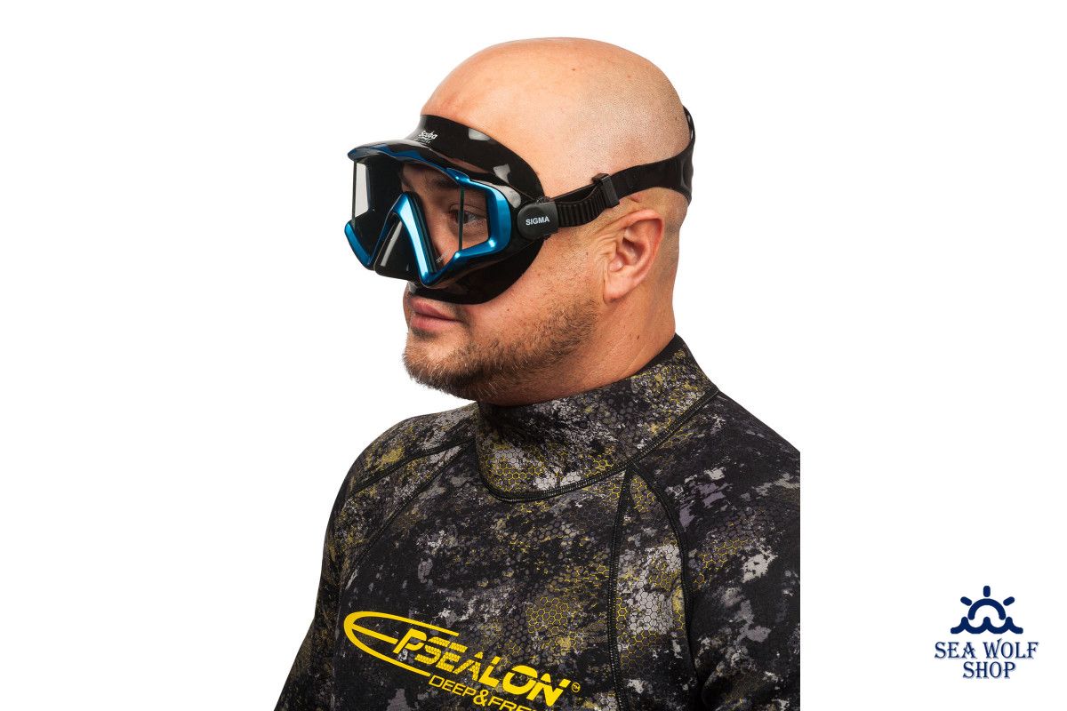 Отличительной особенностью маски SCUBA BROTHERS SIGMA BLUE является большое панорамное стекло, увеличенный размер и обзор линзы достигается за счет двух боковых вставок, при этом угол обзора увеличивается на 20%, по сравнению с обычными масками.