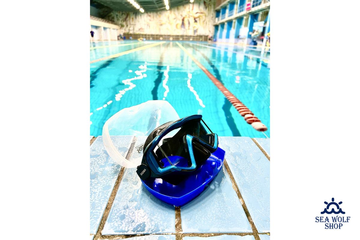 Маска SCUBA BROTHERS SIGMA BLUE, это маска со средним подмасочным объемом, за счет этого обеспечивается меньшее давление маски на лицо, но достигается широкое поле обзора.