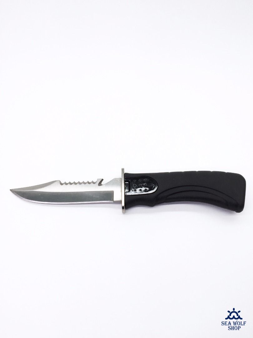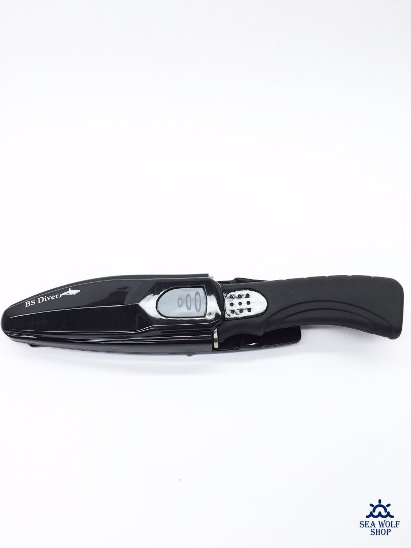 Подводный BS Diver MONTEGO, изготовлен из нержавеющей стали 420ss, лезвие укомплектовано серрейтором, режущей кромкой и стропорезом, рукоять имеет полимерную антифрикционную накладку.