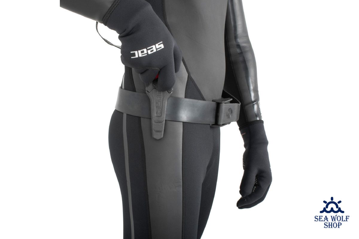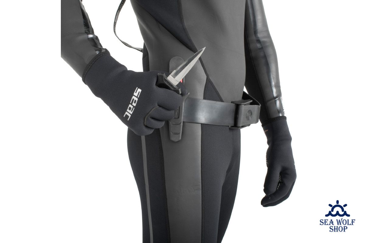 Предназначен для крепления на ноге, руке, грузовом поясе или на груди, при наличии на гидрокостюме лямок для крепления ножа.