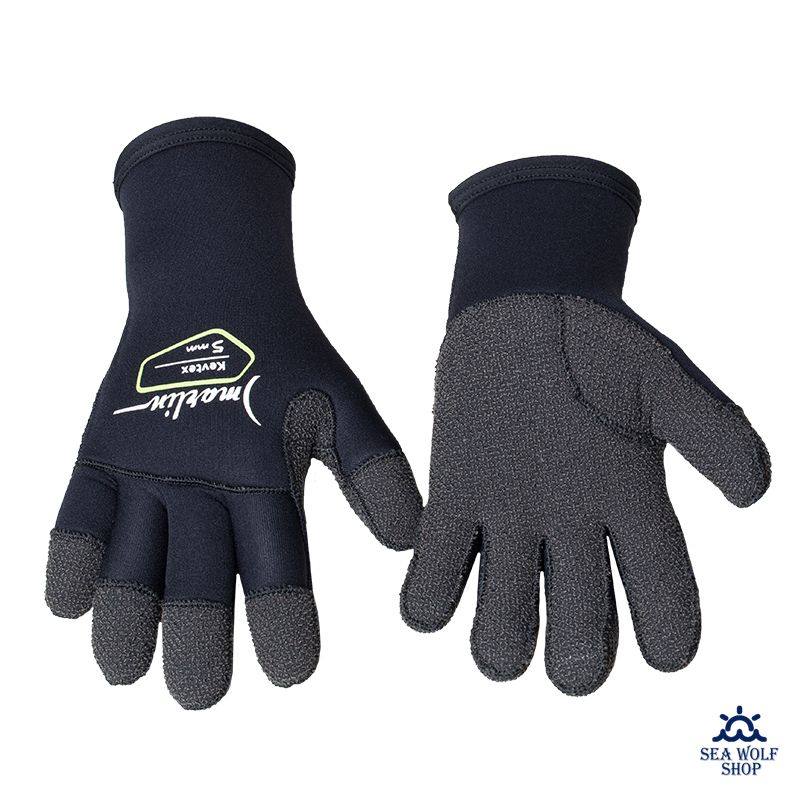 Перчатки Marlin Kevtex (Марлин Кевтекс) изготовлены из эластичного неопрена фирмы с нейлоновым покрытием внутри и снаружи. Ладонь и пальцы перчаток защищены кевларом. Уникальная прочность кевлара позволяет использовать перчатки любителям рэк-дайвинга, подводным археологам, промышленным водолазам, промысловикам и просто любителям лова раков. Анатомический крой обеспечивает удобство при надевании и использовании.