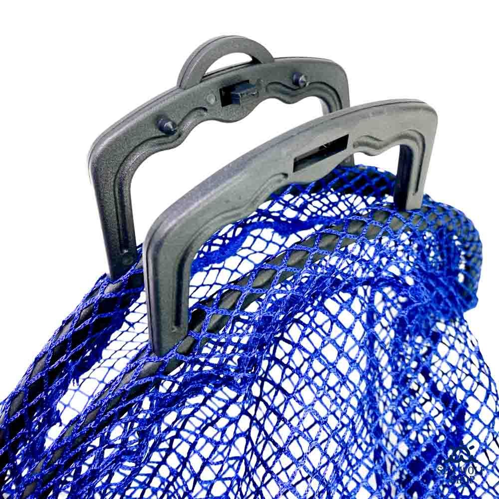 Представляет собой сумку-мешок из сетки. В верхней части сумки жесткий каркас с ручкой и фиксатором.
