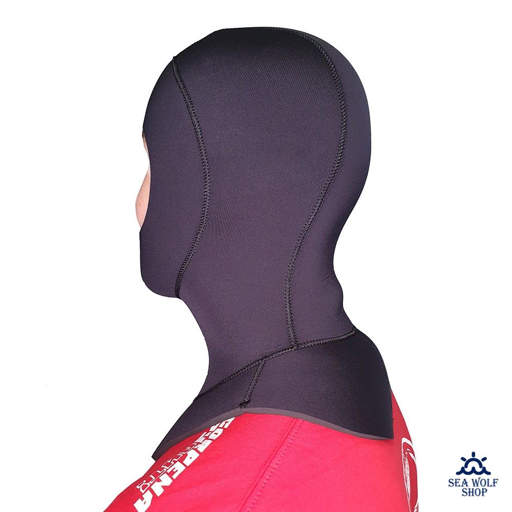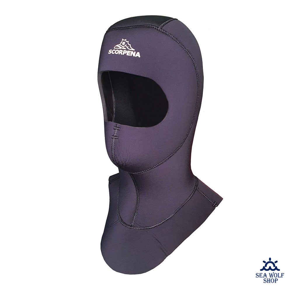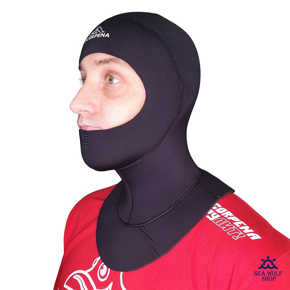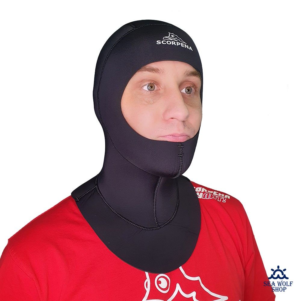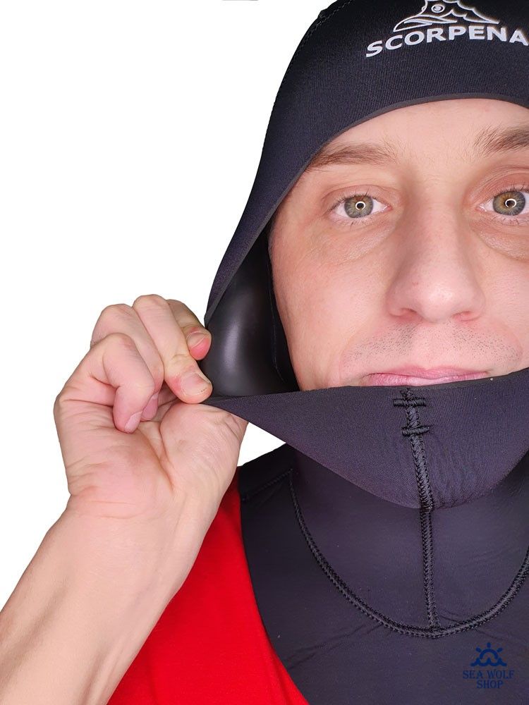 Шлем неопреновый Scorpena - 3 мм, L. Шлем Scorpena предназначен для защиты головы и шеи от переохлаждения при совместном использовании с гидрокостюмами, которые не имеют своего встроенного шлема. Кроме основной, он имеет дополнительные, но не менее важные функции: предохраняет волосы от выдирания и повреждения силиконовым ремешком маски при её надевании/снимании, а также он выступает средством защиты головы и шеи от незначительных механических воздействий. Шлем Scorpena изготовлен по оригинальным анатомическим лекалам из мягкого и эластичного неопрена и лишен грубых швов на внутренней поверхности – для предотвращения пережимания и натирания чувствительных мест лица и шеи. Широкая лицевая манжета имеет гладкую внутреннюю поверхность по всей окружности – для мягкого, но плотного прилегания к лицу и предотвращения проникновения воды к голове и шее. Снизу шлем переходит в широкую манишку, которая благодаря своим размерам, а также внутренней гладкой поверхности smoothskin отлично прилегает к верхней части торса и предотвращает затекание воды к шее снизу.